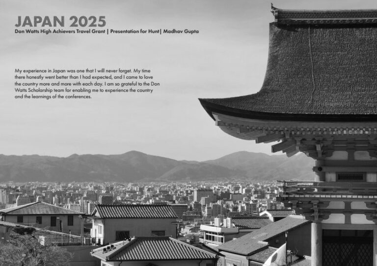 Madhav recently travelled to Japan, visiting Osaka, Kyoto and Kobe to attend architectural conferences and explore significant projects. His trip was made possible through the Don Watts High Achievers Scholarship at Curtin University, which recognises academic excellence, leadership and community impact.