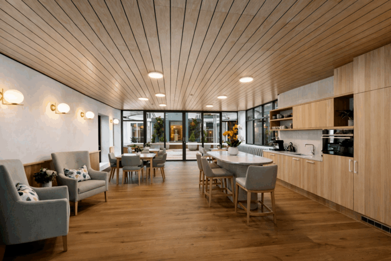 Designing for people living with dementia requires environments that reduce stress, support autonomy and encourage meaningful engagement. The National Aged Care Design Principles highlight the importance of simple circulation, access to nature, tonal contrast, acoustic comfort and small-scale living environments — all critical to supporting orientation and wellbeing.