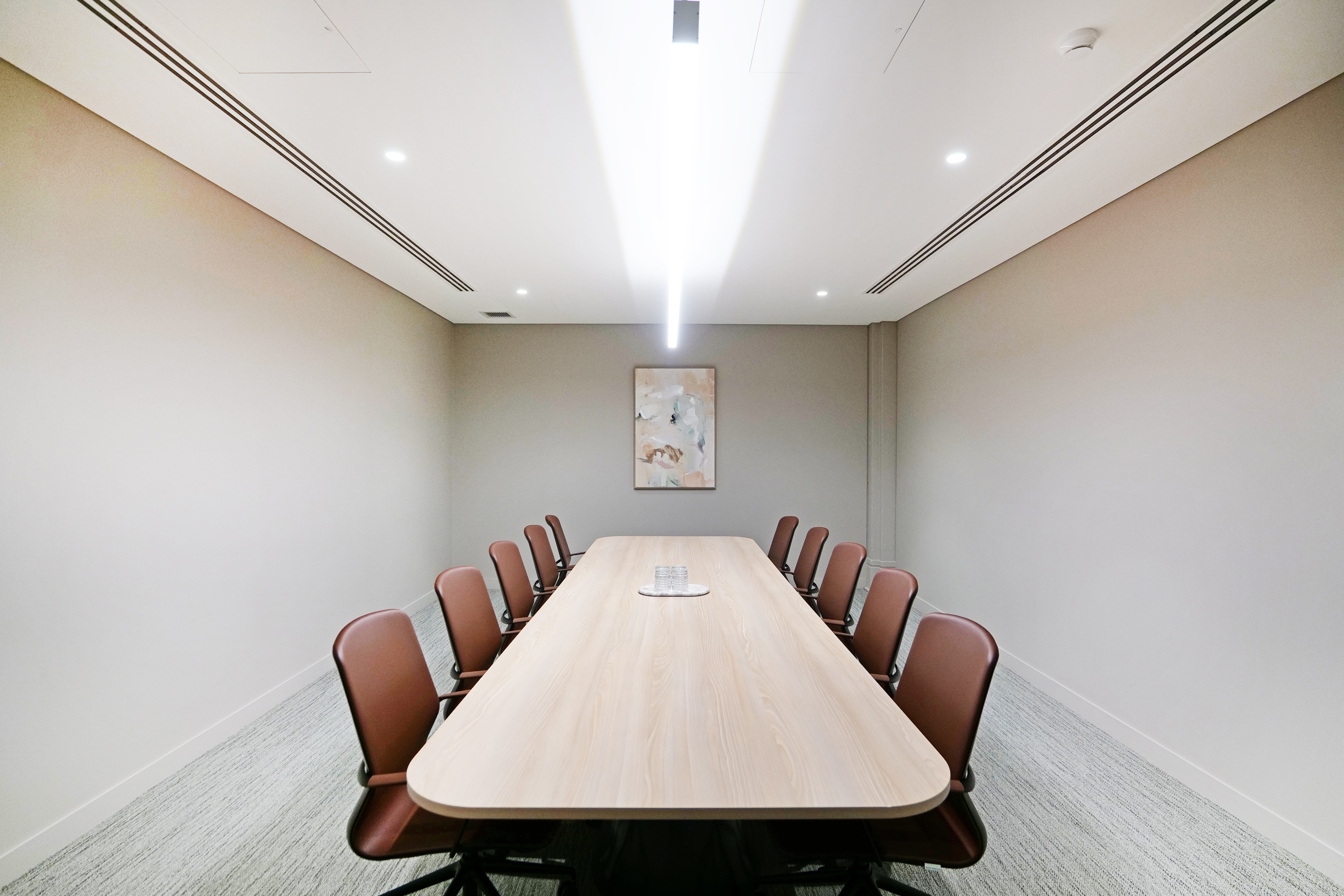 To broaden tenant appeal, the speculative suite was designed with a high degree of adaptability. The planning optimises the building’s heritage window lines, ensuring work areas benefit from abundant natural light. Fresh textures, layered materials and a contemporary palette deliver a welcoming yet professional tone suitable for businesses seeking a refined workplace environment.