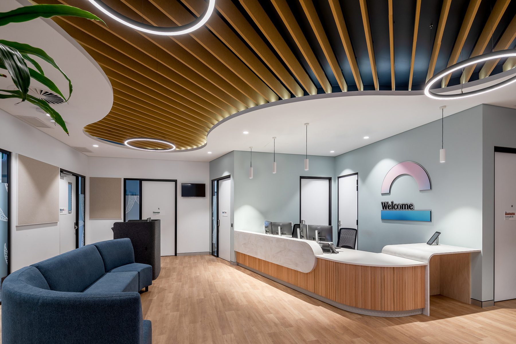 The Armadale Head to Health project involved the transformation of an existing premises into a dedicated mental health facility. The project aimed to create a warm and welcoming environment that adhered to mental health design principles, with a strong emphasis on privacy, safety, and inclusive design. One of the most exciting aspects of the project was the inclusion of feature design elements, such as the distinctive ceiling design in the reception and waiting areas. This addition added a unique and engaging visual appeal to the facility, making it a standout feature.