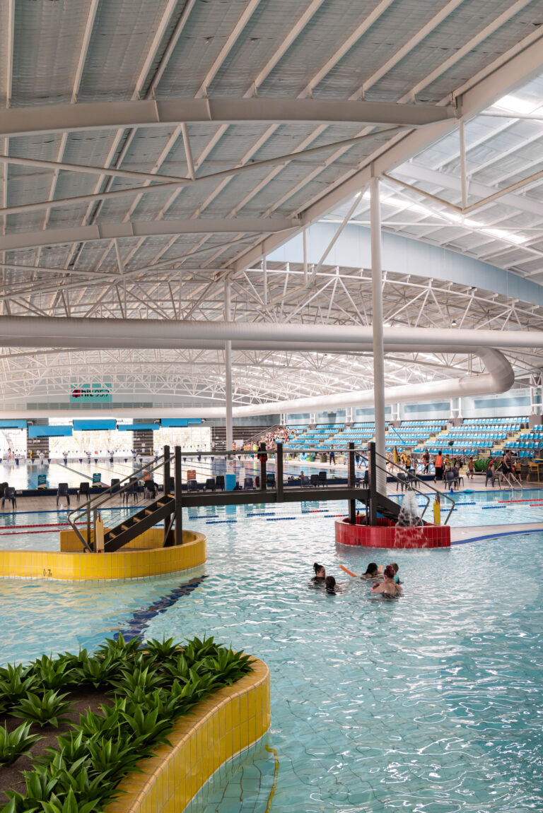 The design unites performance infrastructure with family-friendly recreation, ensuring the centre caters to both elite athletes and everyday users.